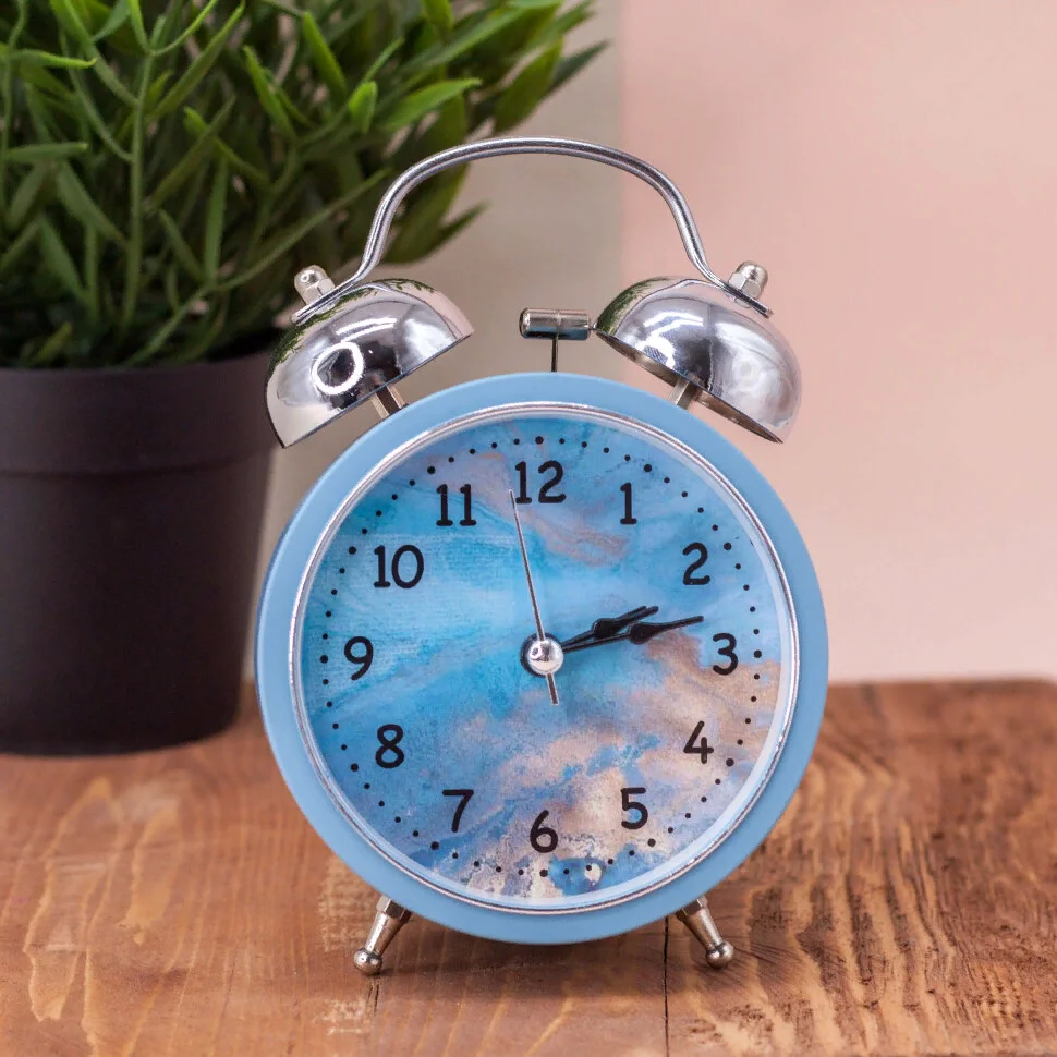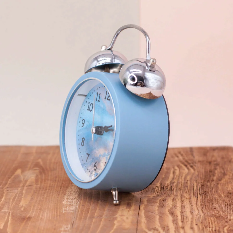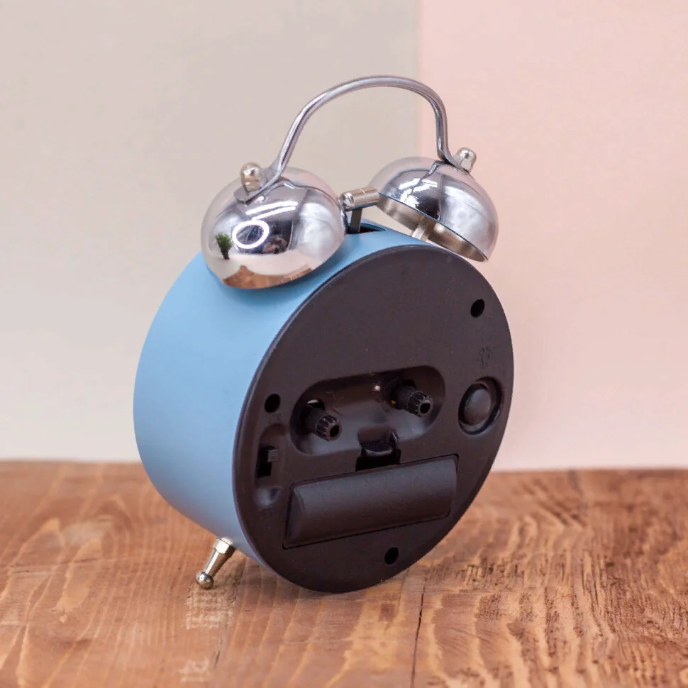Настольные часы-будильник, выполнены из высококачественного пластика, с металлическими элементами. Размер будильника: 13 х 4,4 х 9 см. Вес с упаковкой: 190 гр. Вес без упаковки: 165 гр. Размер упаковки: 13,5 х 5,4 х 10 см. Стильный и интересный дизайн, впишется в любой интерьер. Оригинальный будильник отлично подойдет для подарка не только взрослому, но и ребёнку, и будет будить вас ранним утром, создавая хорошее настроение. Предусмотрена подсветка. Работает от одной батарейки типа АА (напряжением 1,5V), в комплект не входит. На задней панели будильника расположены переключатель включения/выключения механизма, два колесика для настройки текущего времени и времени звонка будильника, и кнопка включения подсветки. Будильник упакован в полиэтиленовый пакет и картонную коробку.
